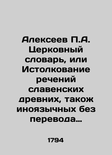 eng Alexeev P.A. Church Dictionary, or Interpretation of the Speeches of Slavonic Ancients, such as those of Foreign Languages, without translation of the scriptures and other ecclesiastical books, with the incorporation of certain ecclesiastical irmoses, newly attached to both the verses quoted and the degrees of the first In Russian (ask us if in doubt)