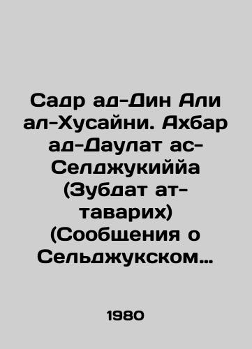 translit Sadr ad-Din Ali al-Khusayni. Akhbar ad-Daulat as-Seldzhukiyya (Zubdat at-tavarikh) (Soobshcheniya o Seldzhukskom gosudarstve. Slivki letopisey, soobshchayushchikh o seldzhukskikh emirakh i gosudaryakh).