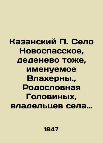 translit Kazanskiy P. Selo Novospasskoe, dedenevo tozhe, imenuemoe Vlakherny., Rodoslovnaya Golovinykh, vladel'tsev sela Novospasskogo.